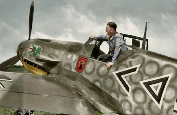 Ця кольорова світлина була зроблена в липні 1941 року, місцем зйомки вказаний Луцьк. На фото – легендарний німецький льотчик-ас Ган...