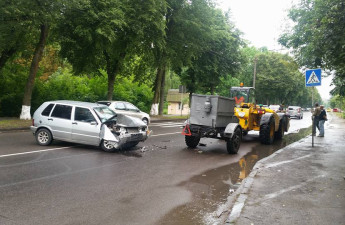 Аварія за участю легковика і автонавантажувача трапилася сьогодні, 13 липня, вранці на вулиці Глушець.
