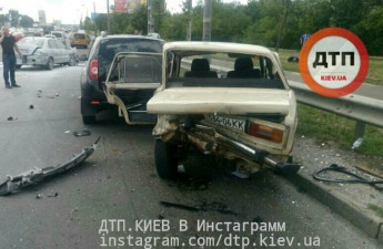 Сірий Mitsubishi Lancer, в якому ймовірно знаходилися співробітники поліції вчинив масштабне ДТП на Петрівці в Києві.