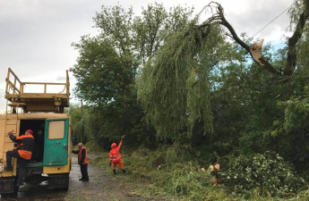 Спільними зусиллями працівники комунальних служб та комунальних підприємств міста разом із державною службою надзвичайних ситуацій прибирають повалені дерева та гілля з доріг, відновлюють лінії електропередачі та контактну мережу електротранспорту