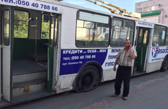Поблизу драмтеатру у тролейбуса лопнуло колесо