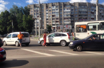 ДТП на кільці поблизу Променя трапилася сьогодні близько 18.00. Легковик Рено і кросовер Хонда в`їжджали на кільце і допустили зіткнення