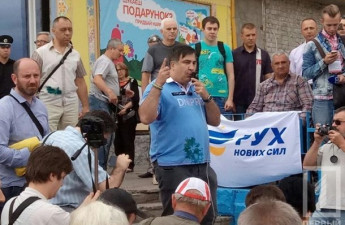 Екс-губернатор Одещини Міхеїл Саакашвілі виступив у Кривому Розі. Під час цього в політика кинули яйцем, в яке була влита зеленка