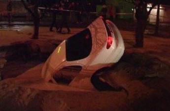 У Києві на Оболоні, на проспекті Героїв Сталінграда через прорив труби під землю провалився автомобіль Ford, повідомляє Магнолія-ТБ