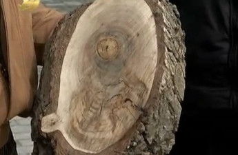 У селі Сьомаки Луцького району під час спилювання майже півстолітнього горіха двоє чоловіків на обрізаній основі побачили малюнок, що нагадував образ Богородиці