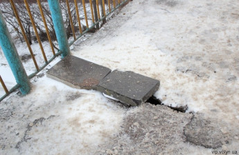 Луцькі комунальники після публікацій у ЗМІ матеріалу про небезпечний міст на вулиці Рівненській дірки прикрили плитами