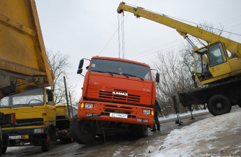 На углу улиц Задворецькои (бывшая Зои Космодемьянской) и Варваровки (бывшая Чапаева) в асфальтовое покрытие около 15:00 в четверг, 3 Февралем, провалился бетоновоз