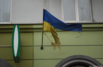 У центрі Луцька висить розірваний і брудний український прапор. ФОТО