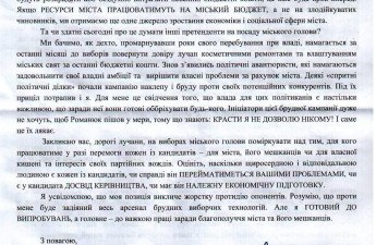 Законність розповсюдження листів кандидата на посаду луцького міського голови, депутата Волиньради Миколи Романюка ставлять під сумнів. Причиною є те, що окремі лучани отримують листи за адресою, яку вказували у договорі з «ПриватБанком» як адресу фактичного місця проживання, хоч зареєстровані за іншою адресою