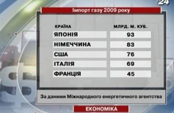 Україна посіла шосте місце серед усіх найбільших імпортерів газу у світі – такі підсумки 2009 року містяться у доповіді Міжнародного енергетичного агентства