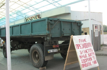 Підприємці торгово-пішохідного ряду між вулицями Кравчука та Карпенка-Карого на Завокзальному ринку у Луцьку 16 серпня перегородили прохід між вулицями Карпенка-Карого та Конякіна вантажними автівками
