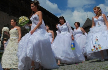 Півсотні дівчат у весільних сукнях взяли участь в параді наречених у Луцьку