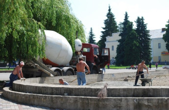 На Театральному майдані Луцька почали заливати бетоном фонтан, аби збудувати на його місці дитячий майданчик