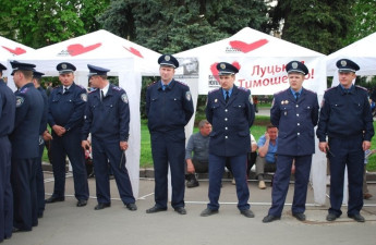 Театральний майдан у центрі Луцька цими хвилинами розділений навпіль – з одного боку майорять прапори Партії Регіонів, з іншого – «Батьківщини». Готуються до публічного виступу лідера БЮТ Юлії Тимошенко.