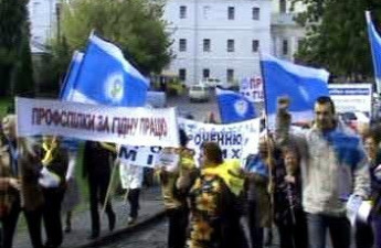 Імпровізовану протестну акцію організували представники профспілок України на території Луцького замку