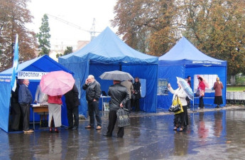 Інформаційні намети для ознайомлення людей з їх трудовими правами, законодавчими нормами, що регулюють трудові відносини, вільними вакансіями в області працюють сьогодні на Театральному майдані Луцька