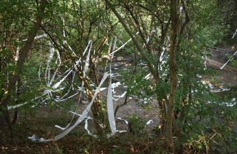 В Луцке под мостом на улице Шопена неизвестные «украсили» деревья бумажными «гирляндами»