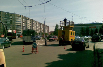 У Луцьку порвався дріт тролейбусної лінії. Жертвою став сріблястий «мерс». ФОТО