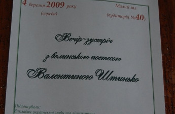 У Волинському державному училищі культури і мистецтв відбувся вечір-зустріч з письменницею і журналістом Валентиною Штинько
