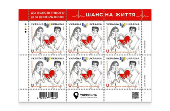 14 червня до Всесвітнього дня донора крові «Укрпошта» ввела в обіг нову поштову марку «Шанс на життя» – на честь тих, хто ділиться найдорожчим. Зображення для поштової марки створила українська художниця Ліза Маркіна. Тираж поштової марки становить 150 000 примірників, конверта «Перший день» – 20 000, а презентаційної папки – 500 примірників. Марковий аркуш містить шість марок номіналом U.