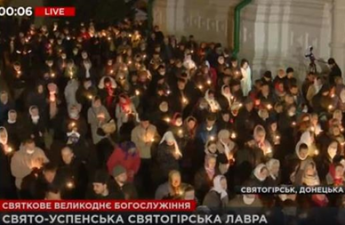 У Свято-Успенській Святогірській Лаврі (УПЦ МП) в Донецькій області на Великодню службу зібралася велика кількість людей, багато з яких були без масок й ігнорували правило соціальної дистанції