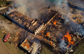 На Рівненщині палала територія монастиря, вибухнули бочки з паливом. Фото з висоти