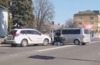 У Володимирі-Волинському мікроавтобус наїхав на поліцейського. Відео