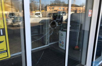 Вночі 10-го березня розтрощили скло вхідних дверей супермаркету «Рідний край» в Нововолинську.