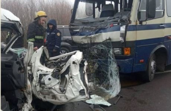 На Волині зіткнулись рейсовий автобус та Ford: легковик розбитий вщент
