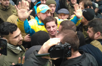 Група людей побила радника глави МВС Зоряна Шкіряка біля будівлі Вищого спеціалізованого суду Києва, де триває розгляд справи прикордонника Сергія Колмогорова