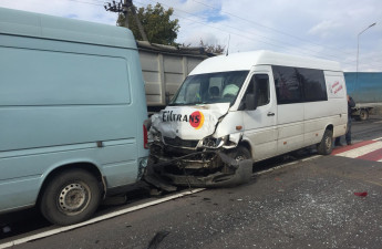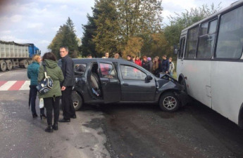 У дорожньо-транспортній пригоді за участю двох мікроавтобусів, легковика та автобуса №107 постраждали двоє жінок