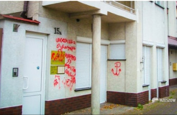 У місті Жешув (Ряшів, - ред.) на півдні Польщі невідомі вандали спаплюжили почесне консульство України в цьому місті, зробивши різноманітні написи червоною фарбою