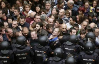 У Каталонії референдум про незалежність почався із сутичок з правоохоронцями. Озброєні поліцейські оточили людей і не дозволяють їм голосувати
