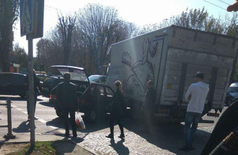 Автомобіль ВАЗ 2109 врізався у бік вантажівки на проспекті Перемоги у Луцьку