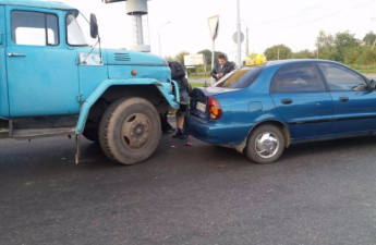 Аварія, під час якої зіткнулися вантажівка та легковий автомобіль служби таксі, сталася у Луцьку
