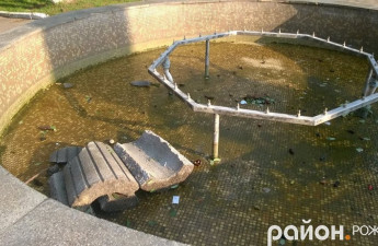 На Волині вандали розбили бетонний смітник та вкинули у фонтан