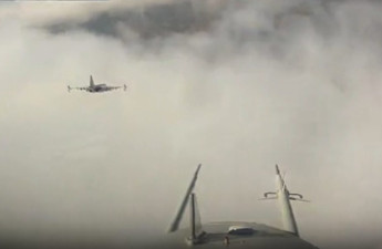 Відео, зняте з кабіни пілота, як льотні екіпажі військово-повітряних сил України відпрацьовують навички бойового застосування на авіаційному полігоні Повурськ у Ковельському районі