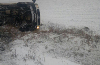 На трасі Луцьк-Маневичі бус знесло в кювет і розвернуло. Фото
