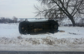 На Волині через слизьку дорогу перевернулось авто. Фото
