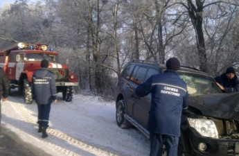 Авто злетіло з дороги в кювет. Машину зі снігового замету витягували рятувальники. Інцидент трапився у селі Кременець Рожищенського району