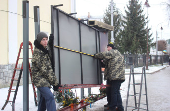 Нещодавно оновлений стенд пам’яті Героям Небесної Сотні та Героям АТО демонтують, аби відновити після пожежі. На питання коли закінчать роботу над реставрацією пошкодженого пам’ятника відповідають не конкретно: «найближчим часом»