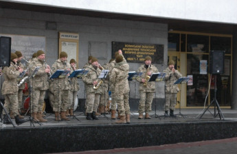 Військовий оркестр 14 окремої механізованої бригади з Володимира-Волинського виступив вчора, 27 листопада, на Театральному майдані Луцька. Далі заплановані виступи в інших містах області