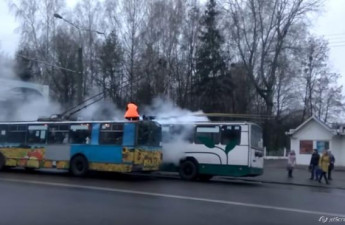 Тролейбус, що загорівся, гасили сьогодні у Луцьку