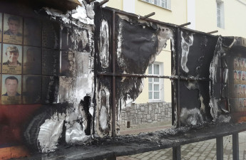 У Луцьку згорів стенд Героїв Небесної Сотні. ОНОВЛЕНО