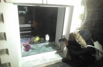 Мітингувальники побили вікна в «офісі Медведчука» у Києві, наразі в будівлі пожежа.