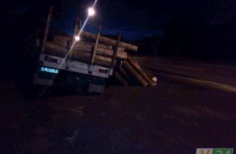 Неподалік Луцька вантажівка «згубила» колоди. Фото