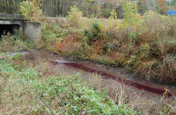 Стічний рів Ківерець, який знаходиться на окраїні міста, наповнився водою яскраво червоного кольору та віддає різким неприємним запахом. Місцеві жителі кажуть, що до рову зливають відходи діяльності фермерського господарства «Золота нива», а мер міста закриває на це очі