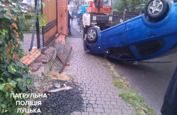 У Луцьку авто влетіло в огорожу та перекинулось