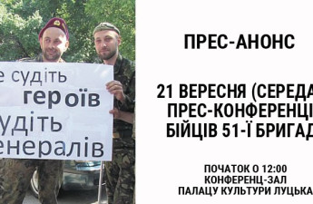 Прес-конференція бійців 51-ої бригади, яких репресує військова прокуратура, відбудеться у середу, 21 вересня, у Луцьку