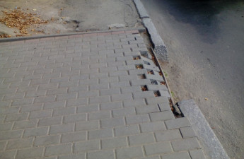 Нещодавно викладена бруківка по проспекту Відродження у Луцьку, на ділянці поблизу зупинки громадського транспорту - розсувається